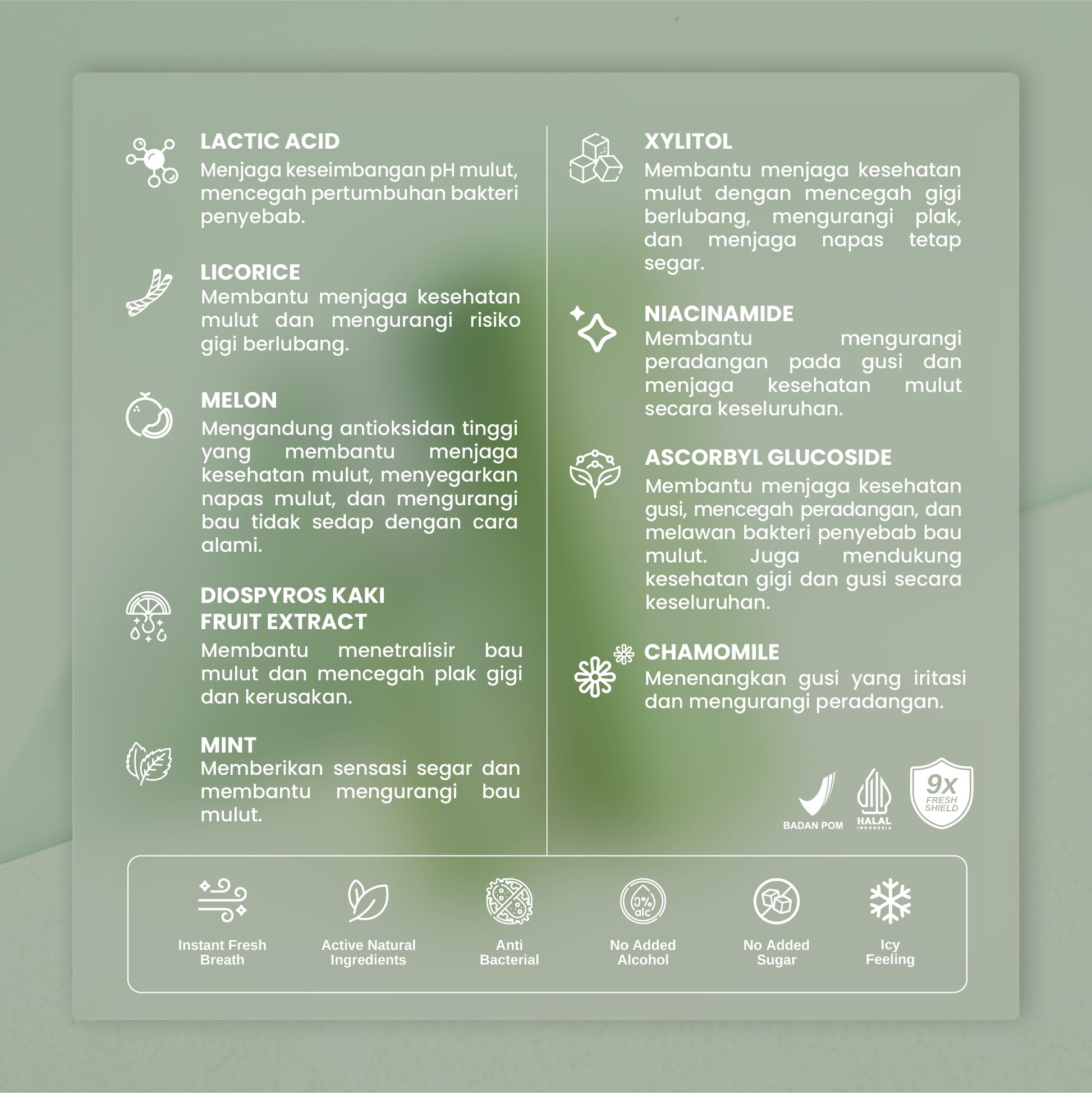 Melon Extract + Mint – memberi kesegaran alami yang tahan lama;